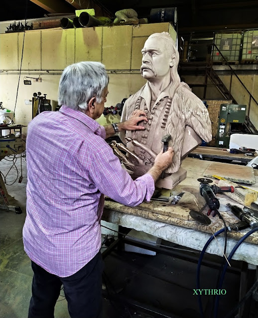 Χαράλαμπος Νεονάκης : Η μελέτη του έργου ξεκίνησε τον Νοέμβρη του 2023 και βασιστήκαμε κυρίως σε φωτογραφίες από βίντεο του YouTube. Έγινε επιλογή αυτής της εικόνας του από τα βίντεο επειδή αυτά θα υπάρχουν διαχρονικά και αυτά θα βλέπουν στο μέλλον και από αυτά θα τον γνωρίσουν οι νεότεροι.